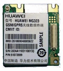 Wybrany modem GSM HUAWEI MG323 (rys. 4) może pracować na czterech różnych częstotliwościach, wyposażony jest w interfejs szeregowy RS-232, wyjście antenowe, interfejs do karty SIM i wejście zasilające. Maksymalna prędkość pobierania danych wynosi 85 kb/s, a wysyłania 42 kb/s. Pozwala na wysyłanie i pobierania wiadomości SMS, rozmowę telefoniczną, obsługuje także protokół TCP/IP. Sterowanie modemem odbywa się komendami AT.