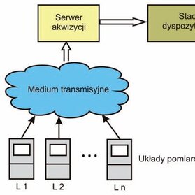 Przyjęto założenie, że liczniki energii elektrycznej są zwykle skupione w grupach. W każdym takim skupisku liczników instalowany jest koncentrator danych pomiarowych KDO, komunikujący się lokalnie z licznikami przewodowo, a z serwerem przechowującym dane pomiarowe przy wykorzystanie technologii GSM (rys. 2).