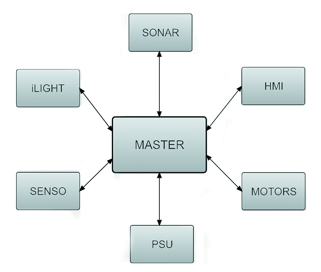 Istotą struktury robota edukacyjnego MRM.edu była innowacyjna modułowa budowa podzespołów elektronicznych. Z założenia każda funkcja robota miała być zrealizowana w postaci niezależnego modułu elektronicznego. Zaletą jest możliwość prostej rozbudowy systemu o kolejne moduły. Optymalnym rozwiązaniem było zastosowanie struktury nadrzędny-podrzędny, w tym przypadku jeden moduł nadrzędny zarządza sześcioma lub więcej modułami podrzędnymi. Każdy z modułów ma własny mikrokontroler  oraz tworzy sieć wewnętrzną (rys. 2).