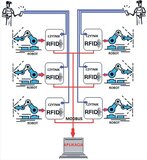 W skład sieci monitoringu przemysłowego wchodzą następujące elementy: czytniki RFID zainstalowane na każdym z monitorowanych stanowisk, identyfikatory RFID indywidualne dla każdego z pracowników, sieć przesyłająca informacje zrealizowana na protokole MODBUS, baza danych, aplikacja interpretująca.