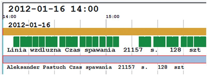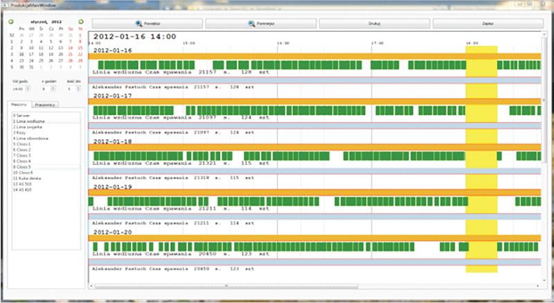 Aplikacja jest sercem systemu monitoringu produkcji. To za jej pomocą odbywa się prezentacja wyników pomiarów. Dane z bazy danych pobierane są w czasie rzeczywistym, następuje ich przetwarzanie, którego wynikiem jest graficzna prezentacja cyklu pracy maszyny. Każdy wiersz informuje o włączeniu maszyny, danych osobowych operatora, stanie logicznym monitorowanych czynności maszyny i ostatecznie o czasie pracy i liczbie wykonanych operacji, które przekładają się na liczbę wykonanych komponentów wykorzystywanych w danym procesie wytwórczym. Wszystkie informacje prezentowane są w dziedzinie czasu. Znając optymalny czas wykonywania przez maszynę jednego pełnego cyklu pracy możliwe jest określenie, czy proces produkcyjny przebiega prawidłowo. Każdego rodzaju postój maszyny w łatwy sposób zostaje odczytany z rekordów w bazie.