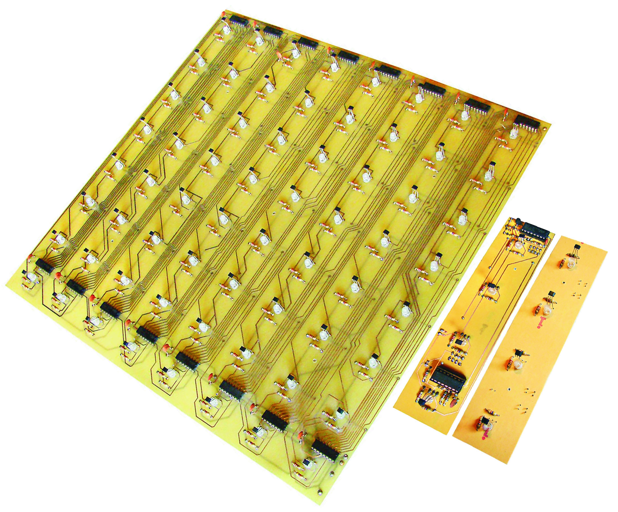 Układ elektroniczny zamontowany w szachownicy składa się z modułu szachownicy głównej i dwóch modułów szachownic bocznych. Umieszczono je pod polami szachownic (rys. 4.). Odpowiednio połączone tworzą układ, którego zadaniem jest zbieranie informacji o rozmieszczeniu bierek na szachownicy i sygnalizacja optyczna rozpoznania ruchu człowieka.