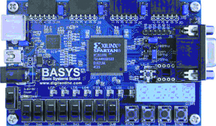 Rys. 1. Moduł prototypowy Basys firmy Digilent z układem FPGA Spartan 3E 100 [3]