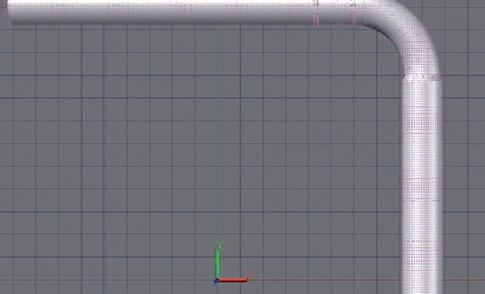 Po oznaczeniu wszystkich wartości temperatur następuje proces interpolacji wyznaczonych punktów. W czasie interpolacji porównywane są kolejne punkty sąsiednie. Jeśli trzy z nich mają identyczny kolor (odbiegający od reszty modelu), nie podlegają uśrednianiu. Takie miejsce może być potencjalnym miejscem występowania uszkodzenia. Po jego dokonaniu cały obszar modelu został pokryty punktami reprezentującymi temperaturę. Jak widać na rys. 4, modelowi instalacji zostały nadane kolory zgodnie z wartościami temperatur, jakie otrzymano podczas pomiarów. Zbędne informacje, np. dotyczące temperatury tła, zostały pominięte.