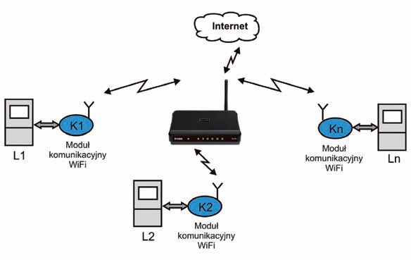 Rys. 1. Sieć WiFi w konfiguracji gwiazdowej [WiFi network in star configuration]